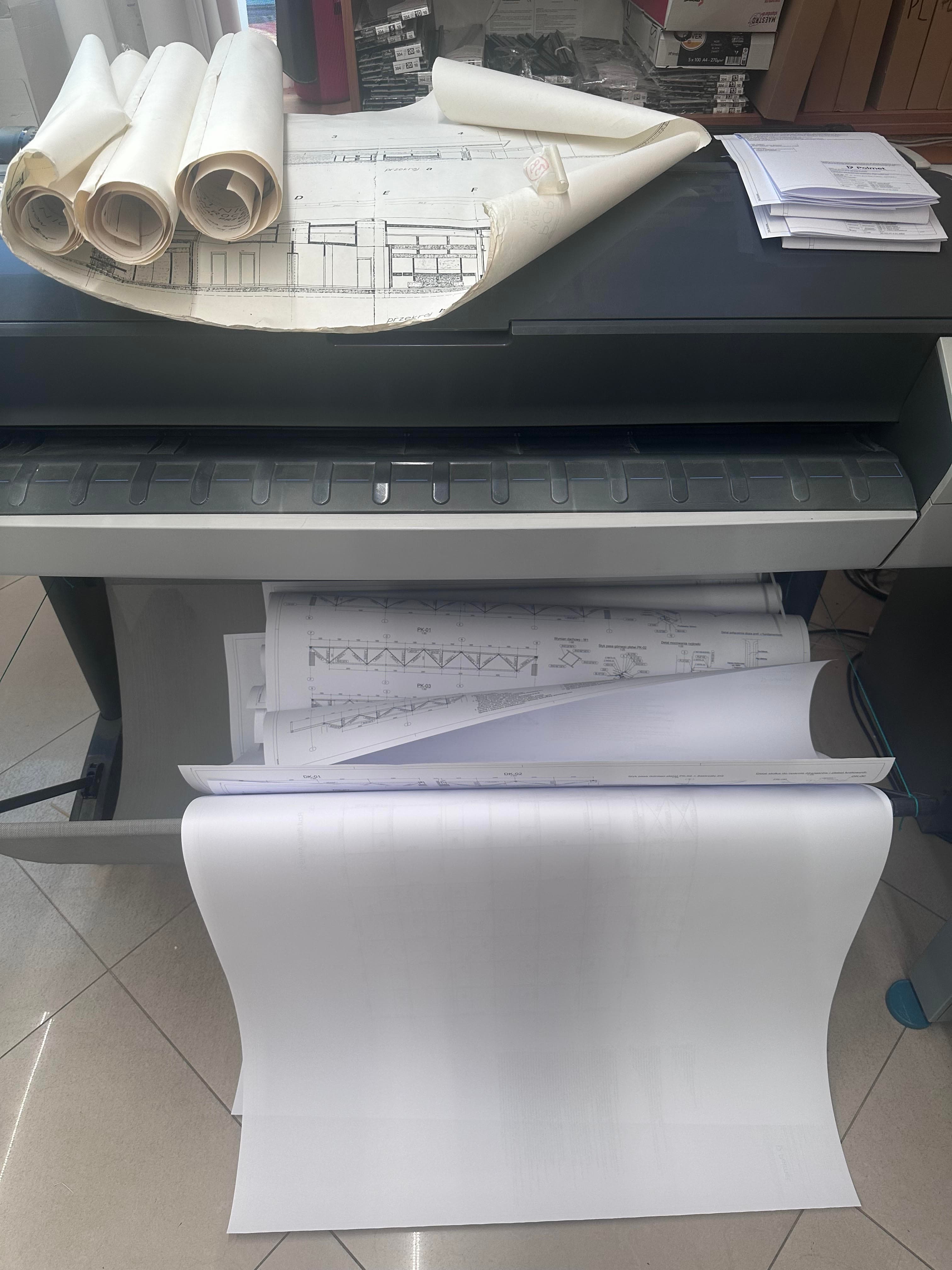 W naszej drukarni realizujemy wysokiej jakości wydruki wielkoformatowe dokumentacji – od formatów A3 po A0+. Oferujemy szybki i precyzyjny druk CAD i GIS na papierze 80g, idealnym do tzw. „kresek” (pokrycie do 10% tuszu). Drukujemy rzuty, przekroje, elewacje, schematy instalacji, projekty budowlane i mapy geodezyjne.