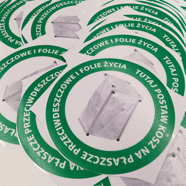 Używamy trwałych folii, mocnych klejów i laminatów klasy „no slip”. Naklejki spełniają standardy przyczepności i wytrzymałości niezbędne do użytkowania w obszarach roboczych z dużym ruchem mechanicznym. Są też odporne na zrywanie podczas wielokrotnego przejazdu wózka. Od ponad 10 lat współpracujemy z Amazon Polska w zakresie znakowania podłóg w magazynach i wdrażania rozwiązań poprawiających bezpieczeństwo – nasza jakość została sprawdzona w praktyce.